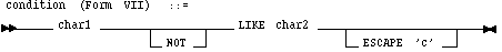 While the equal (=) operator exactly matches one character value to another, the LIKE operator matches a portion of one character value to another by searching the first value for the pattern specified by the second. Note that blank padding is not used for LIKE comparisons.